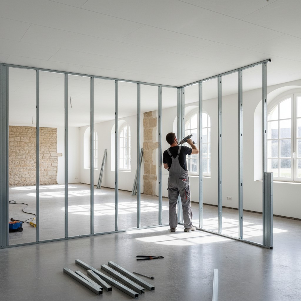 - ✓Pose de plaques de plâtre avec finitions soignées pour un rendu impeccable.